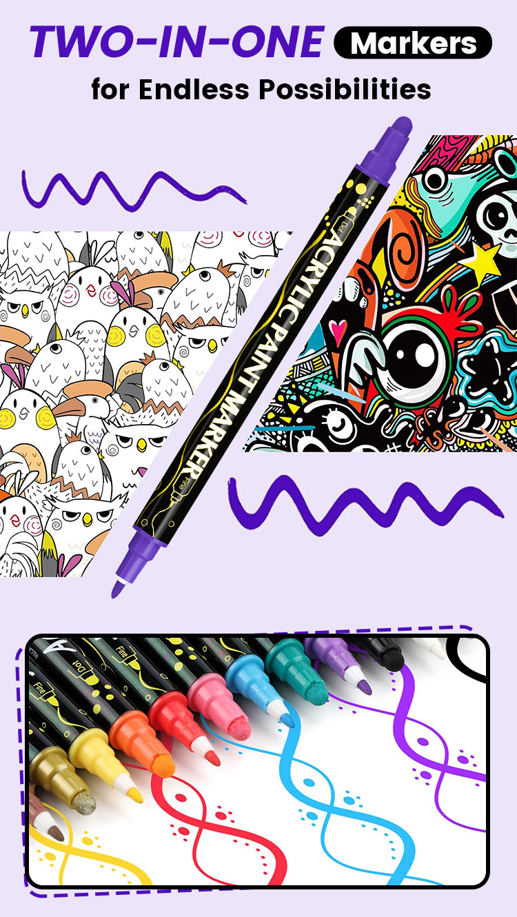 🤩Dual Tip Acrylic Paint Pen Marker - 😍Outstanding coverage and perfect brightness allow artists to express their whimsical ideas on different surfaces of objects in a long-lasting, smooth and shiny way.✨