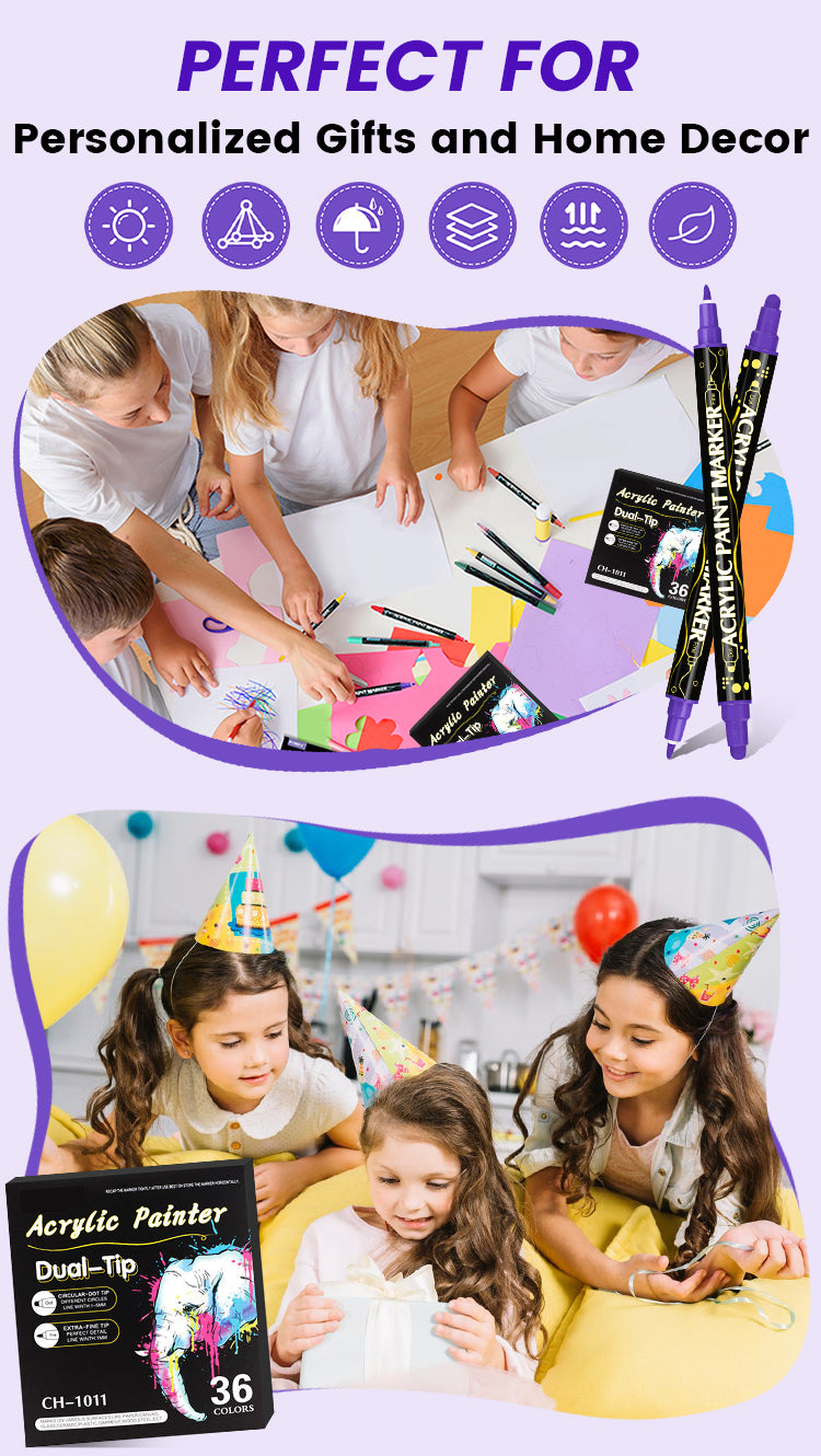 🎨PREMIUM QUALITY PAINT PEN : Unlike traditional acrylic paint pens, this acrylic markers set is made of the finest water-based ink, which is odorless, waterproof and non-toxic. No need to shake or press the tip to release the ink, just open the cap and use the acrylic pens. Outstanding coverage and perfect brightness allow artists to express their whimsical ideas on different surfaces of objects in a long-lasting, smooth and shiny way.