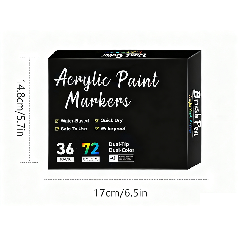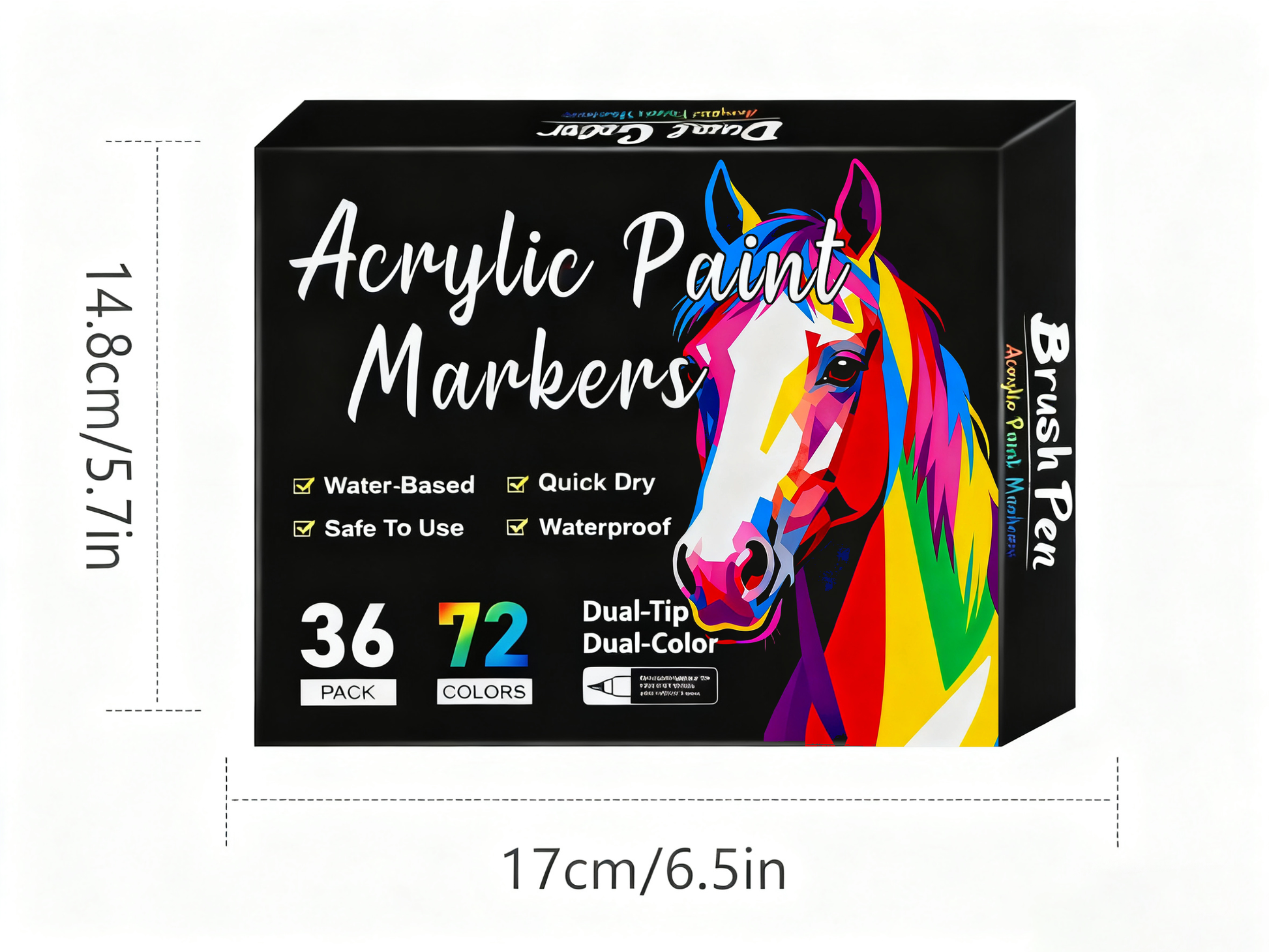 🎨Our acrylic marker set is available in 72 unique and vibrant colors, including 12 metallic colors, which feature mirror-reflective marking elements that bring your everyday creations to life. Bright, vibrant primary and complementary colors let your imagination run wild with possibilities.
