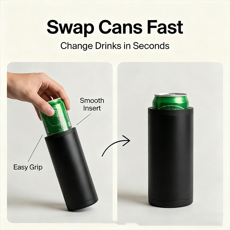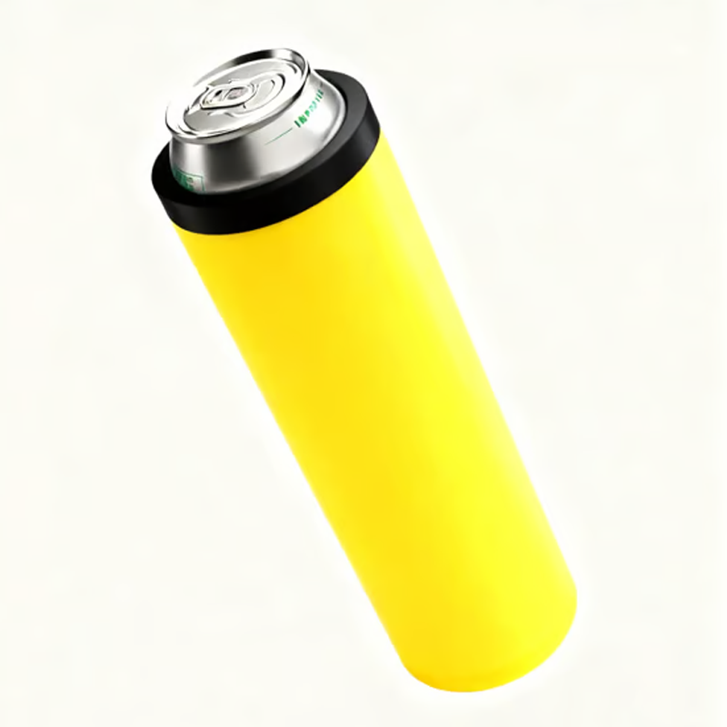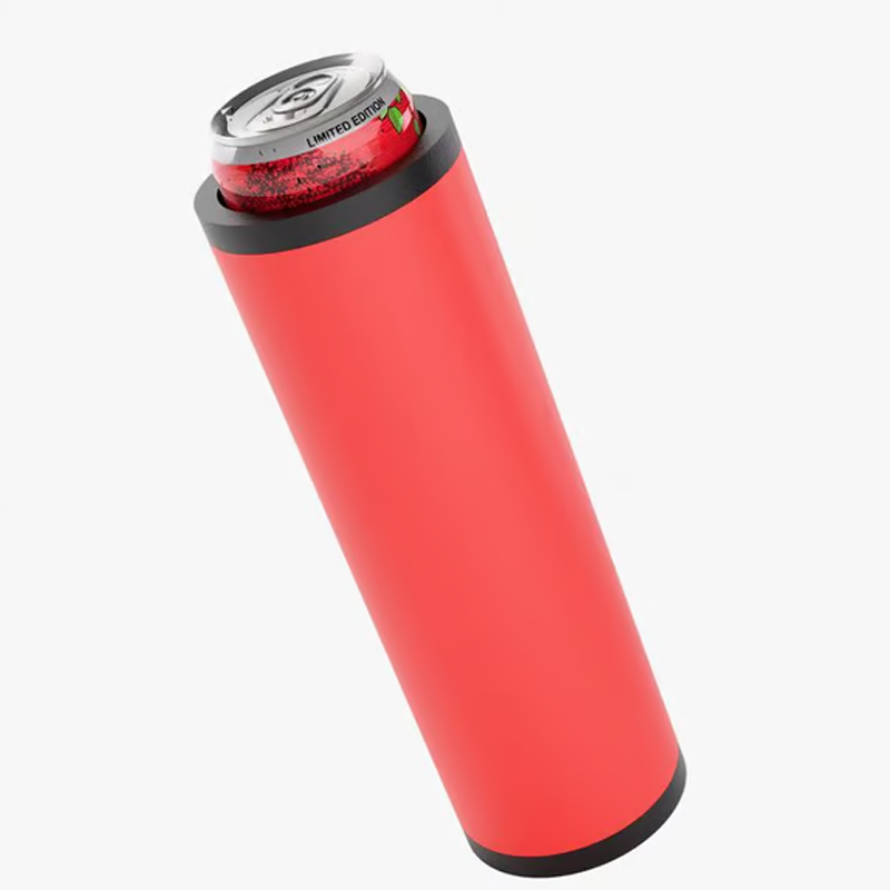 This dual-can beverage holder fits two 12oz (approx. 355ml) cans vertically. Crafted with 3D printing for durability and precision, it keeps your drinks icy cold and ready to enjoy—no frequent refills needed! Simply pop the can tab, take a sip, then slide the holder down to automatically load the next can.