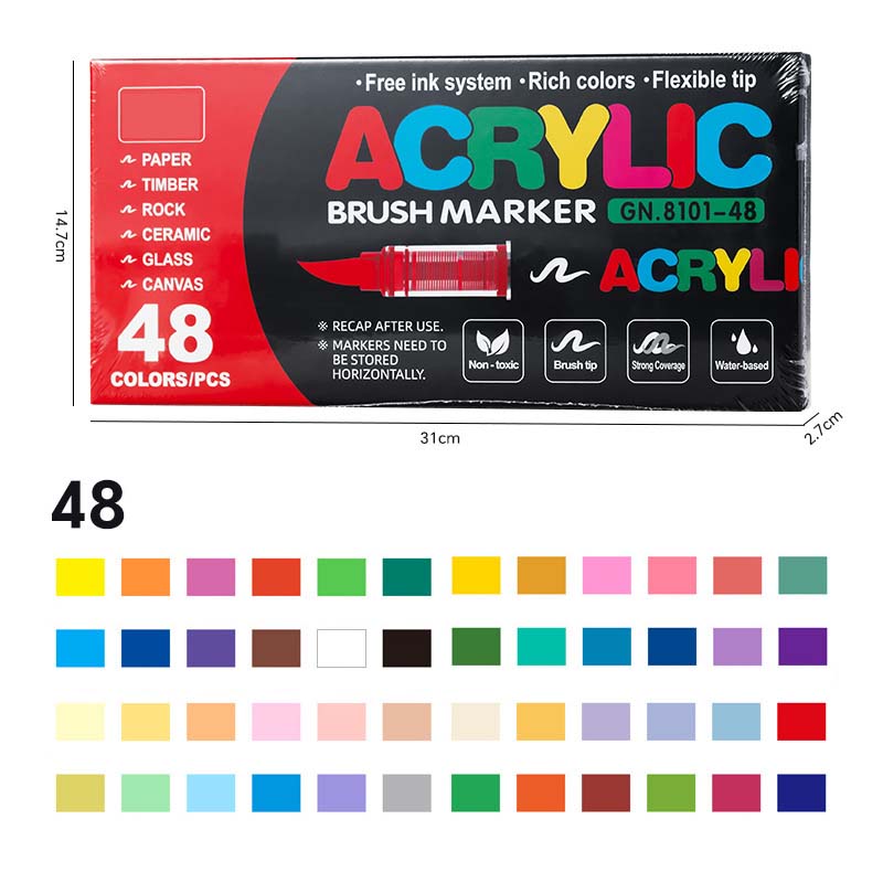 Package Includes:1*Direct Liquid Soft Head Acrylic Marker Pen for DIY Crafts (12/24/36/48/60 Colors Packaging)